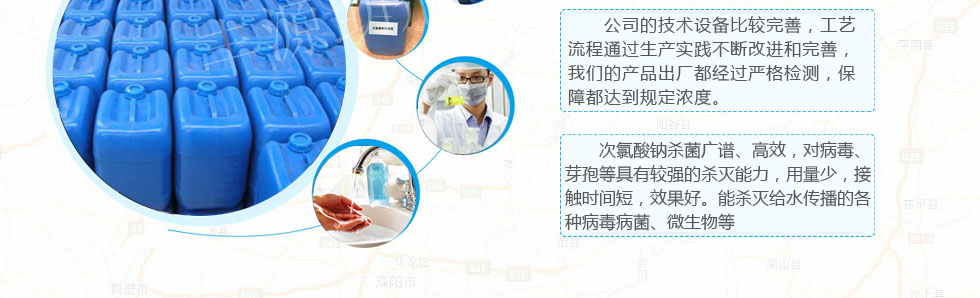 公司專業生產銷售化學品,保證國標含量、品質穩定、貨真價實,我公司擁有著豐富經驗的84消毒液,食品級次氯酸鈉,漂白水,次氯酸鈉消毒水,工業級次氯酸鈉營銷團隊和售后技術服務人員,并于多家知名…